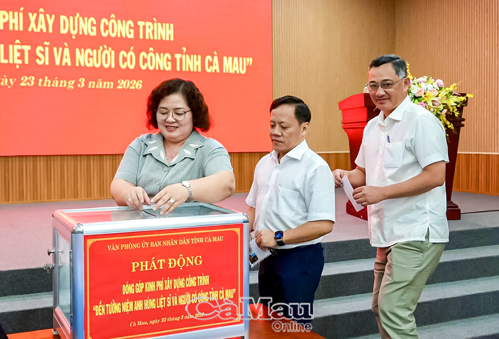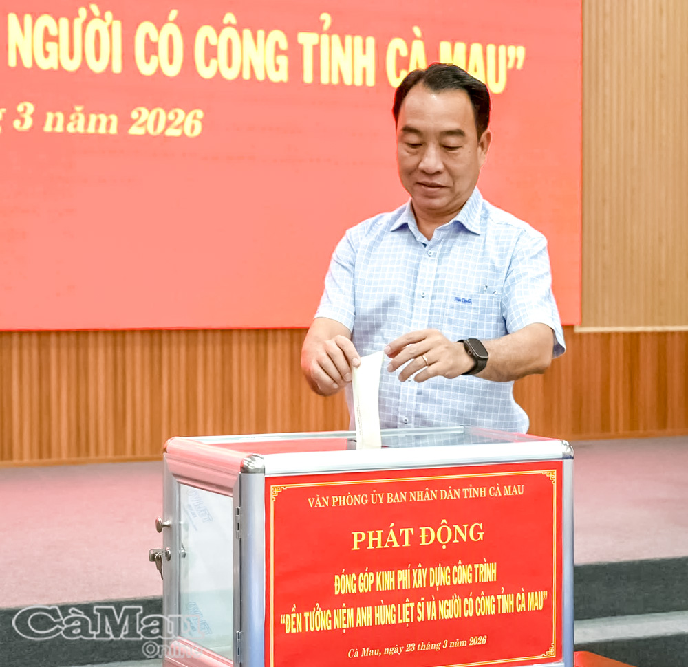 Báo Cà Mau Lễ phát động đóng góp ủng hộ Quỹ xây dựng Đền tưởng niệm Anh hùng liệt sĩ và người có công của tỉnh Cà Mau được Văn phòng UBND tỉnh tổ chức chiều 23/3. Đây là công trình có ý nghĩa chính trị, lịch sử và mang giá trị nhân văn sâu sắc.