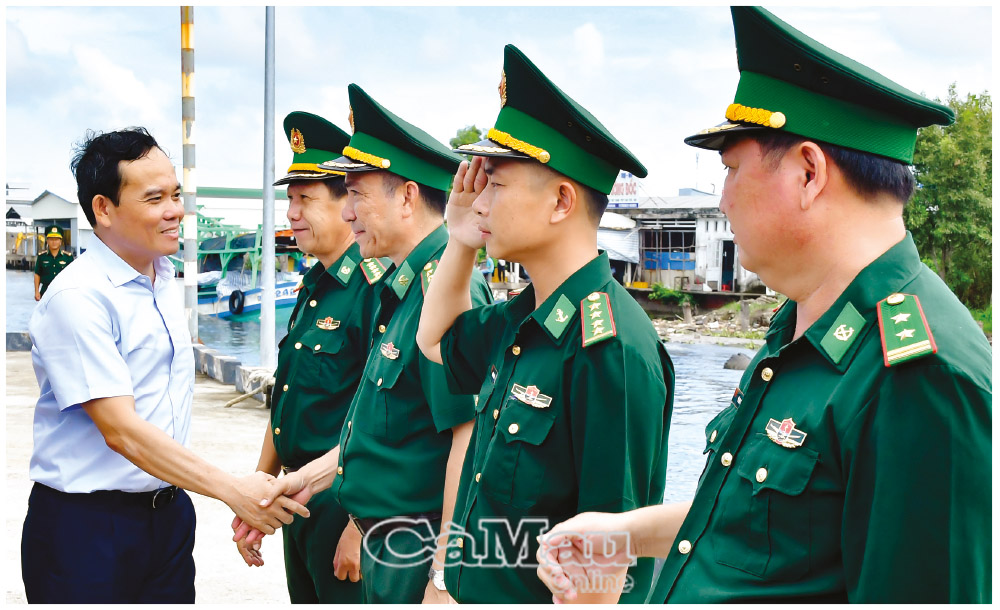 Phó Thủ tướng Chính phủ Trần Lưu Quang (nay lá Bí thư Thành uỷ TP Hồ Chí Minh) về thăm, động viên Bộ đội Biên phòng Cà Mau đứng chân tại địa bàn thị trấn Sông Ðốc (nay là xã Sông Ðốc), ngày 26/6/2023. Ảnh: THANH MINH