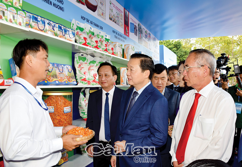 Phó Thủ tướng Trần Hồng Hà tham quan trưng bày sản phẩm OCOP tại Hội nghị Xúc tiến đầu tư tỉnh Bạc Liêu năm 2025. Ảnh: HỮU THỌ
