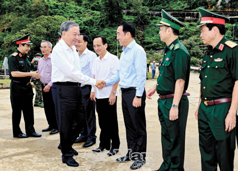 Ngày 19/11/2025, Tổng Bí thư Tô Lâm kiểm tra tiến độ các dự án trọng điểm đang được triển khai tại đảo Hòn Khoai và chỉ đạo những nội dung quan trọng nhằm tăng tốc, sớm hoàn thành dự án trong thời gian ngắn nhất, tạo nền tảng quan trọng cho Cà Mau phát triển bứt phá. (Trong ảnh: Các đồng chí lãnh đạo tỉnh Cà Mau vui mừng chào đón Tổng Bí thư Tô Lâm). Ảnh: TRẦN NGUYÊN