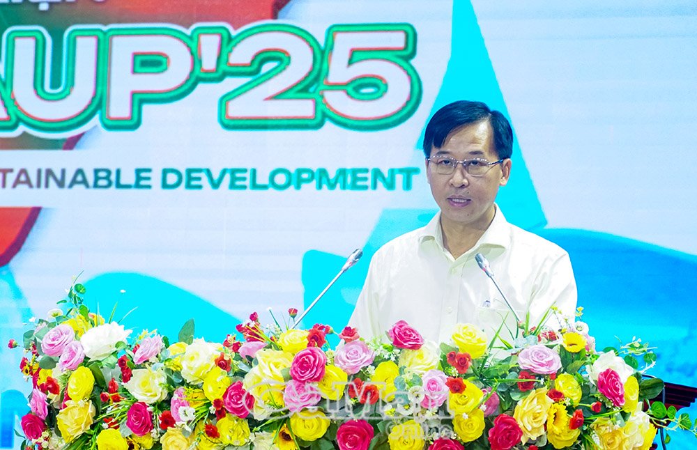 Ông Quách Văn Ấn, Phó Giám đốc Sở KH&CN, Trưởng Ban tổ chức cuộc thi và Sự kiện CamaUP'25, phát biểu tại lễ bế mạc.