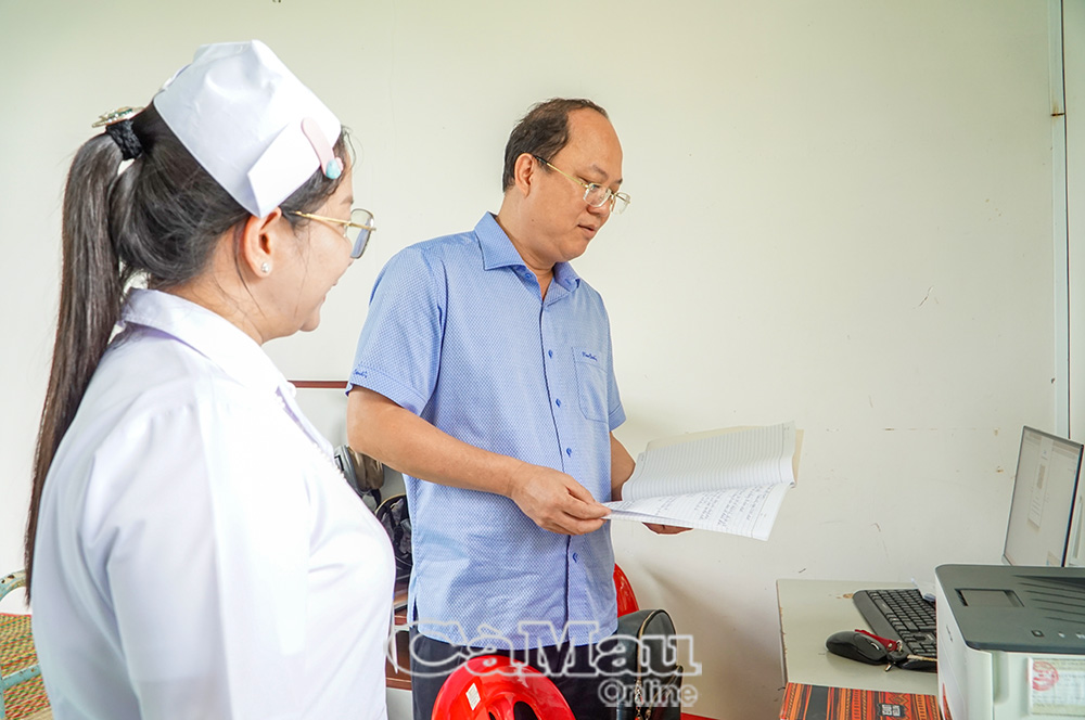 Bí thư Tỉnh uỷ rà soát công tác thông tin khám chữa bệnh tại trạm y tế xã Vĩnh Mỹ.