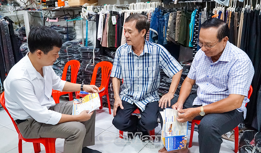 BHXH cơ sở Cái Nước tuyên truyền chính sách BHXH tự nguyện đến tiểu thương chợ Cái Nước.