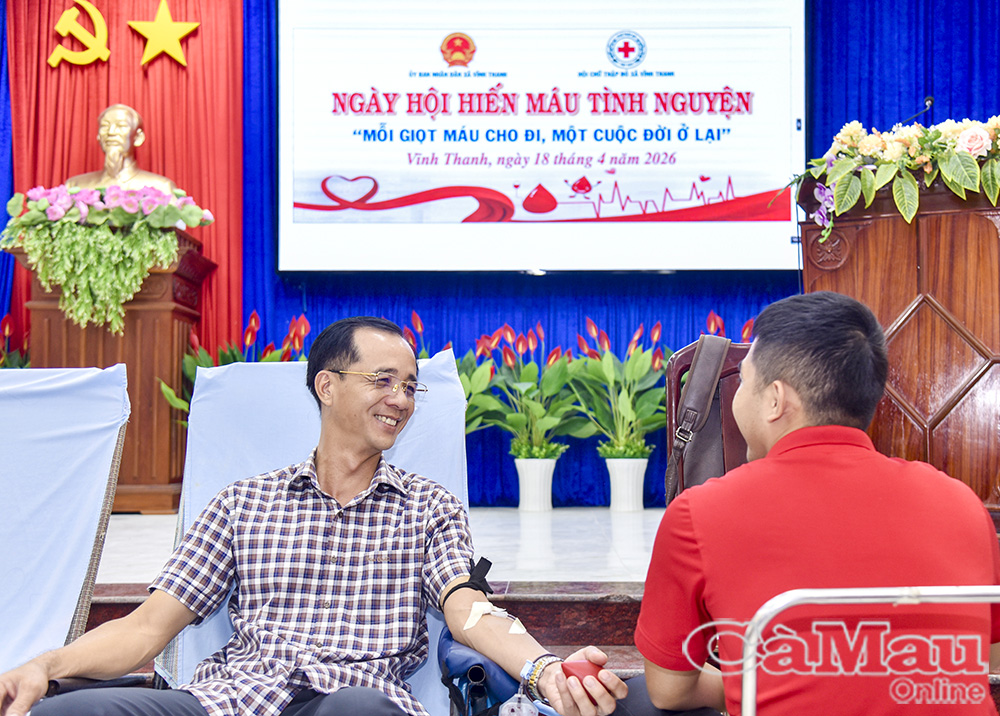 Báo Cà Mau Gần 200 cán bộ, công chức, viên chức và người dân trên địa bàn xã Vĩnh Thanh tham gia Ngày hội hiến máu tình nguyện. Đặc biệt, các đồng chí lãnh đạo Đảng uỷ, UBND xã đã tiên phong, nêu gương thực hiện nghĩa cử cao đẹp này.
