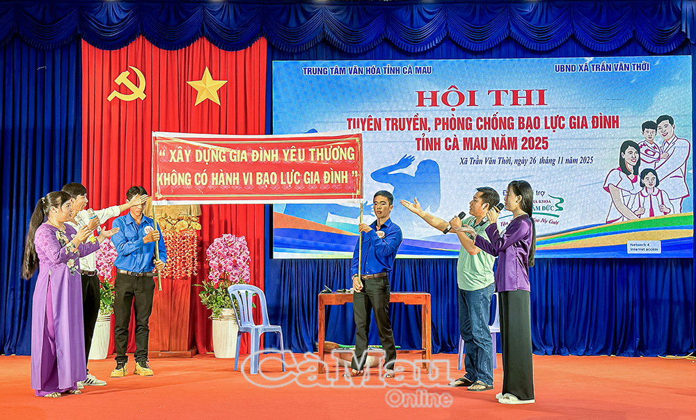 Báo Cà Mau Ngày 26/11, Trung tâm Văn hoá tỉnh Cà Mau phối hợp UBND Xã Trần Văn Thời tổ chức Hội thi Tuyên truyền phòng chống bạo lực gia đình năm 2025, thu hút 18 đội với gần 200 tuyên truyền viên đến từ 38 ấp trên địa bàn.