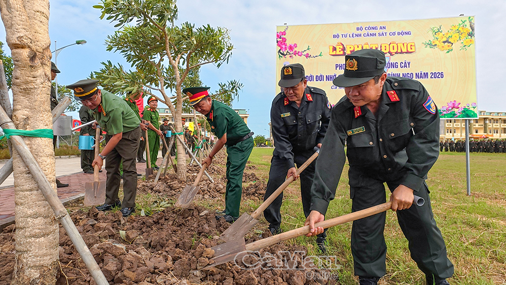 Ngày 26/2, tại Trụ sở khối Cảnh sát, Công an tỉnh Cà Mau tổ chức Lễ phát động “Tết trồng cây đời đời nhớ ơn Bác Hồ” Xuân Bính Ngọ 2026.