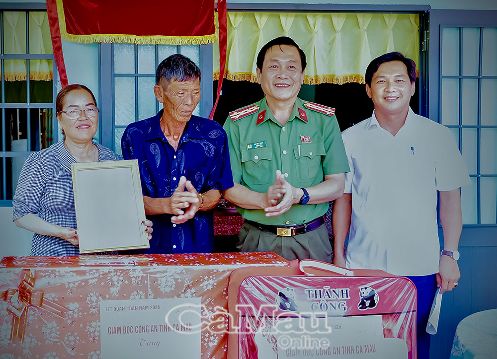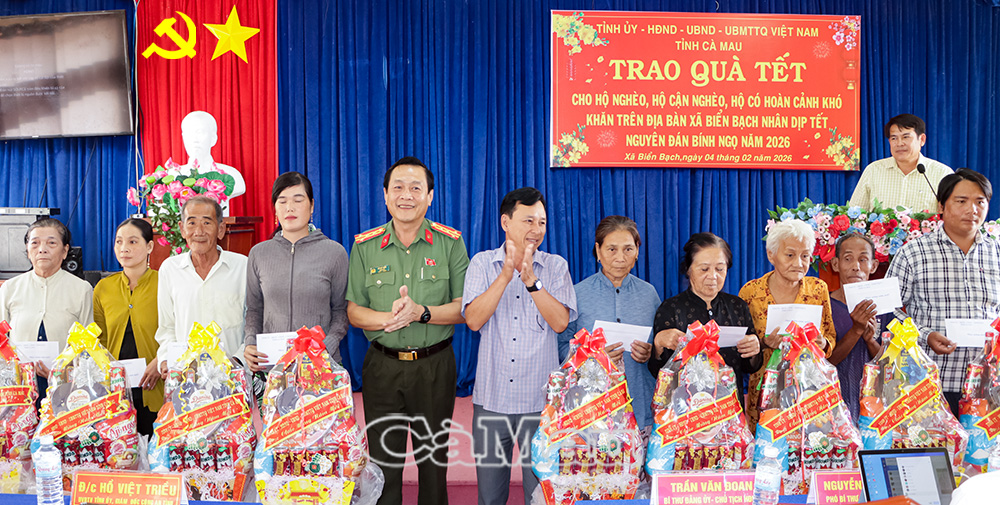 Báo Cà Mau Nhân dịp Tết Nguyên đán Bính Ngọ 2026, chiều 4/2, Công an tỉnh Cà Mau tổ chức nhiều hoạt động an sinh xã hội thiết thực tại các địa phương, góp phần chăm lo đời sống vật chất, tinh thần cho hộ nghèo, gia đình có hoàn cảnh khó khăn, thắt chặt mối quan hệ gắn bó giữa lực lượng Công an với Nhân dân.