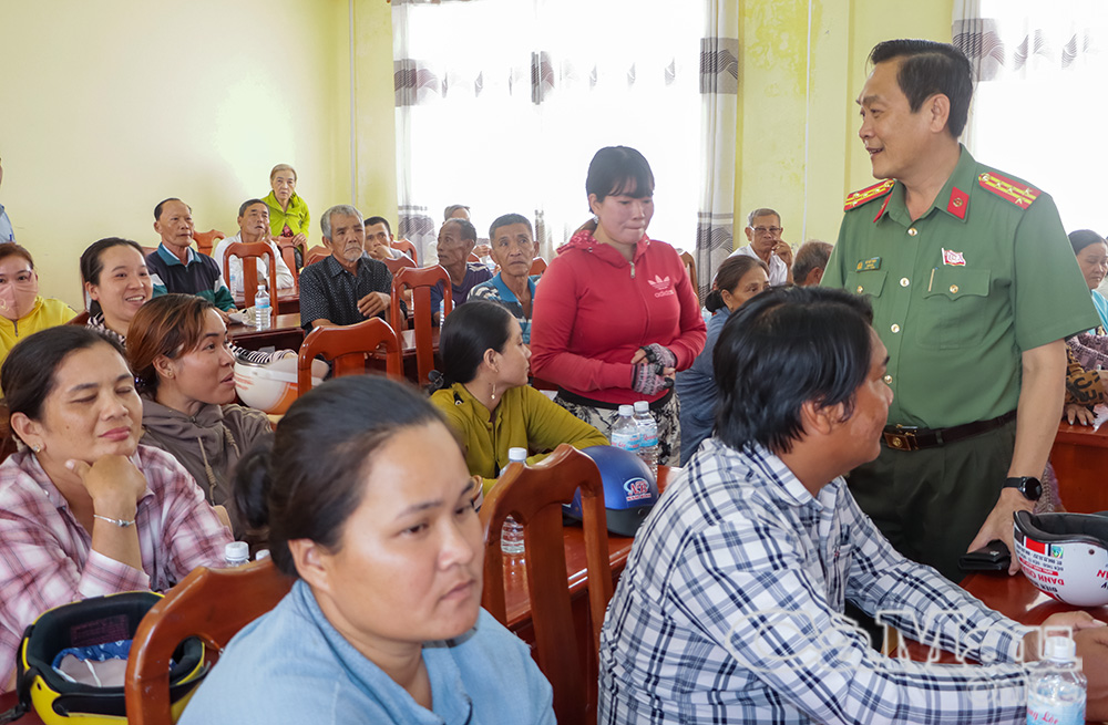 Đại tá Hồ Việt Triều ân cần thăm hỏi, gửi lời chúc mừng năm mới đến bà con Nhân dân.