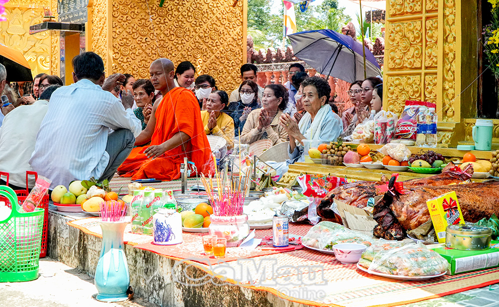 Đồng bào Khmer vào chùa cầu siêu cho linh hồn những người đã khuất vào ngày cuối của tết Chôl Chnăm Thmây.