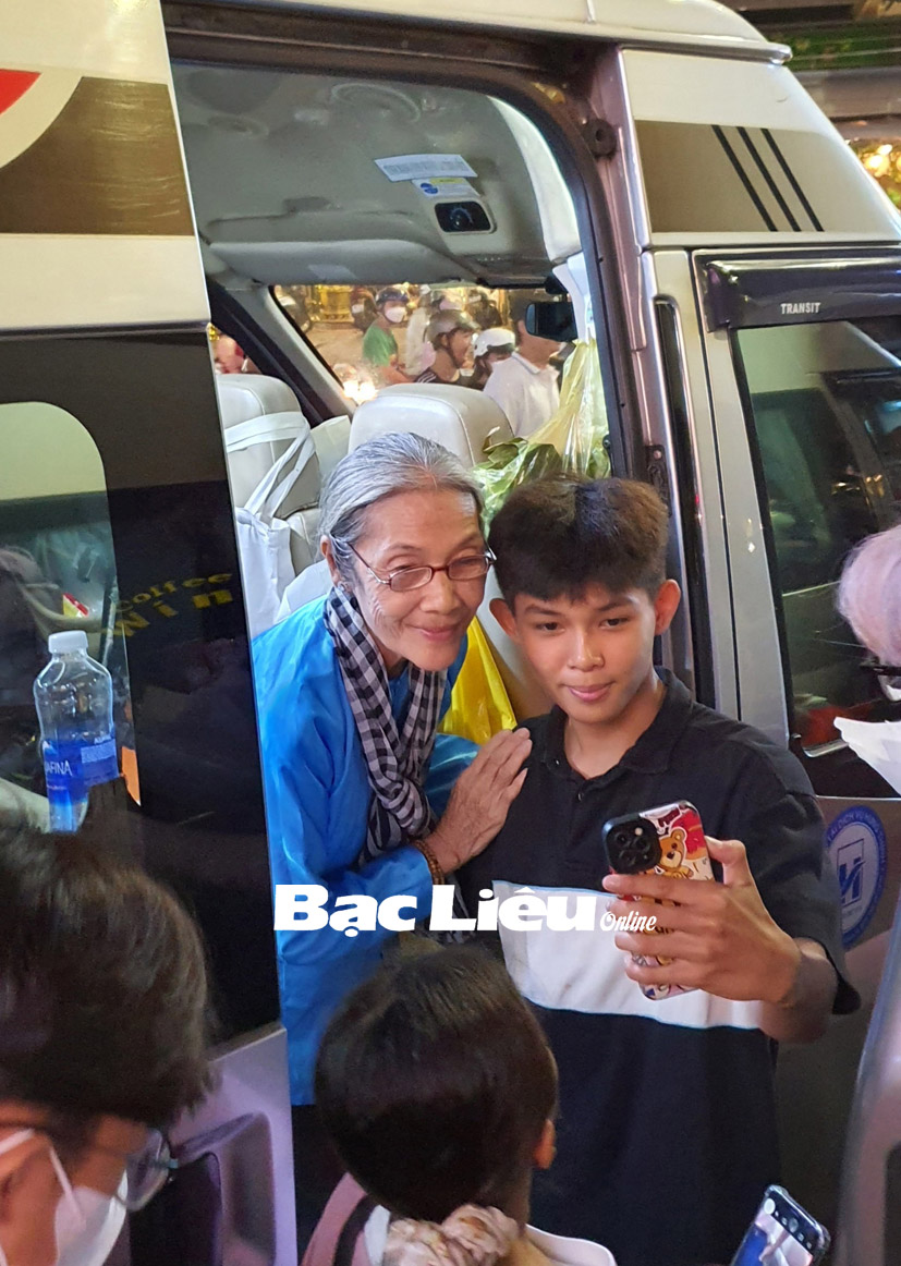 Một khán giả Bạc Liêu chụp ảnh cùng thần tượng của mình - nhân vật bà Hai trong phim Lật mặt 7 “Một điều ước” của Lý Hải. Ảnh: C.T
