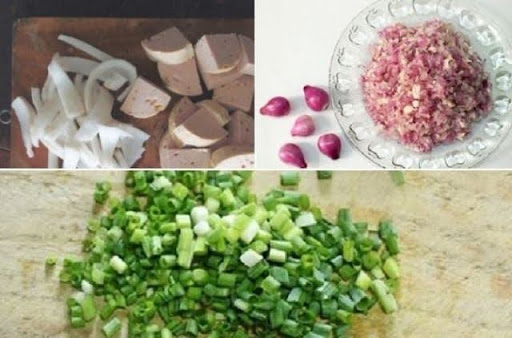 - Hành tím băm nhỏ, hành lá cắt khúc.