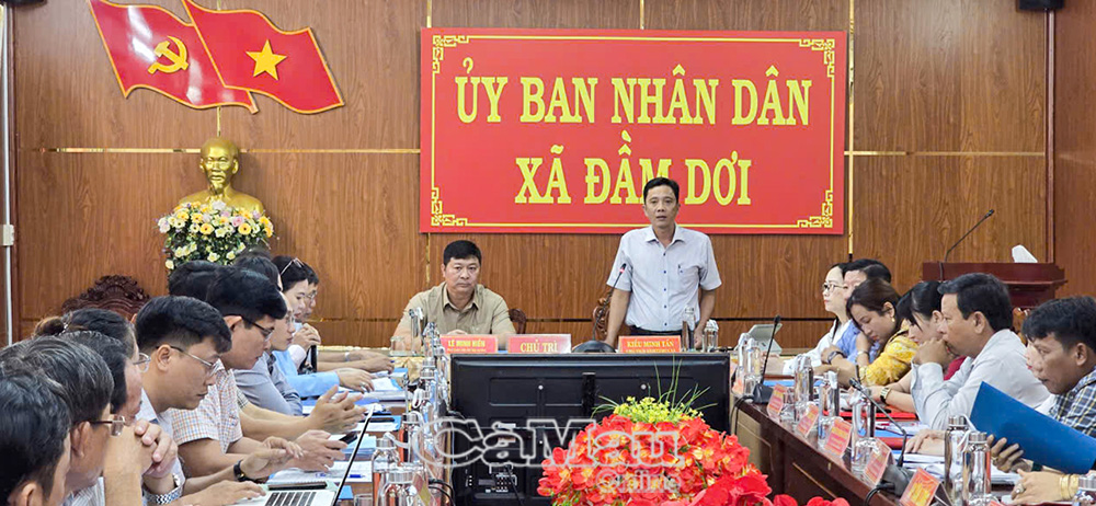 Chủ tịch UBND xã Đầm Dơi Nguyễn Trí Tài phát biểu tại buổi làm việc.