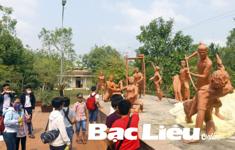 Học sinh tham quan, tìm hiểu Di tích lịch sử Nọc Nạng (TX. Giá Rai). Ảnh: H.T