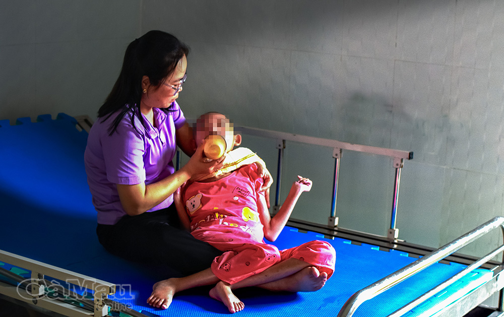 Công việc của chị Kiều My là chăm sóc, hỗ trợ các bé khuyết tật, phần nhiều là khuyết tật nặng.