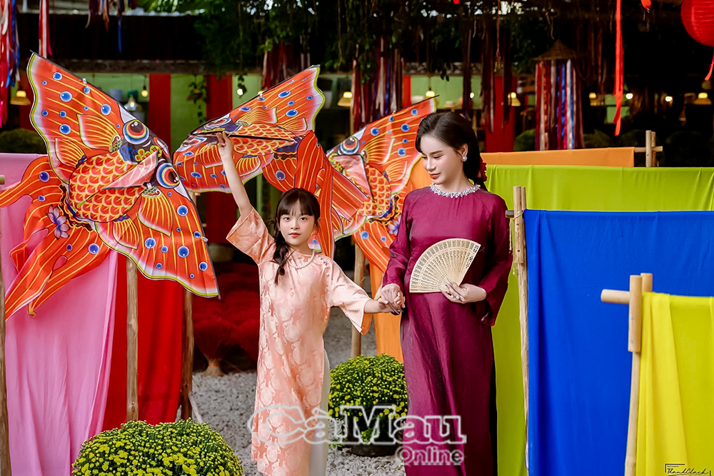Áo dài vẫn là phục trang chính trong hầu hết các bộ ảnh, nhưng được biến tấu đa dạng về màu sắc, chất liệu và cách phối phụ kiện. Không ít bạn trẻ còn ưu tiên các gam màu nổi bật như: đỏ, vàng, xanh ngọc, những sắc màu tượng trưng cho may mắn, tài lộc đầu năm. Một số khác lại chọn phong cách nhẹ nhàng, hoài cổ với áo bà ba, khăn rằn, tạo nên nét duyên rất Cà Mau.