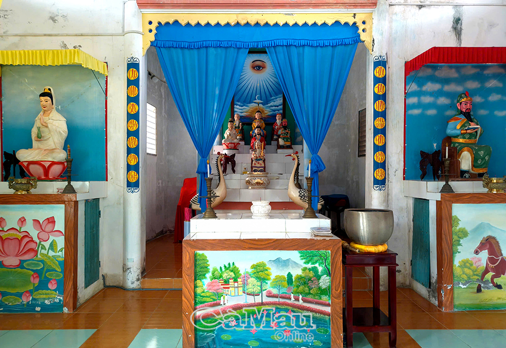 Trong Thánh thất, Chánh giữa điện thờ “Thiên Nhãn”, bên tả điện thờ Quan Thánh, bên hữu điện thờ Diêu Trì Kim Mẫu.
