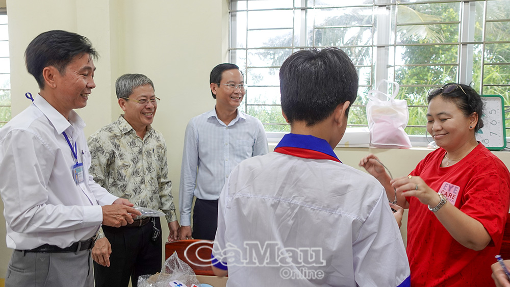 Thấu hiểu những thiệt thòi ấy, Bệnh viện Mắt - Da liễu tỉnh phối hợp với Trung tâm Y tế khu vực U Minh và xã U Minh tổ chức chương trình chăm sóc mắt học đường tại Trường THCS Nguyễn Trung Trực. Ðây không chỉ là hoạt động y tế đơn thuần, mà là hành trình của yêu thương và trách nhiệm, được gửi gắm từ trái tim của những người thầy thuốc đến với trẻ em vùng nông thôn. Chỉ trong một ngày, gần 500 học sinh được khám sàng lọc thị lực, phát hiện sớm tật khúc xạ và trao tặng kính miễn phí.