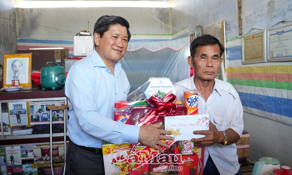 Dịp này, Tỉnh uỷ - HĐND - UBND - Uỷ ban MTTQ Việt Nam tỉnh Cà Mau trao tặng mỗi gia đình một phần quà Tết thay lời tri ân sâu sắc.