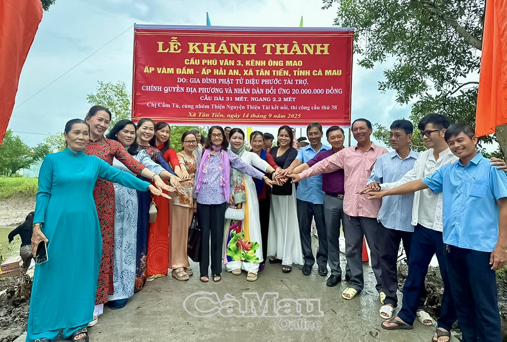 Suốt hơn 4 năm gieo duyên việc thiện, Võ Trọng Hữu kết nối xây dựng và trao tặng gần 60 cây cầu giao thông nông thôn tại nhiều địa phương trong tỉnh Cà Mau. Riêng trong năm 2025, có 17 nhịp cầu nối nhịp bờ vui, tất cả đều được lắp đèn chiếu sáng, để đêm về, làng quê rực sáng, an tâm cho người dân qua lại. Những cây cầu ấy không chỉ nối liền đôi bờ, mà còn mở ra cơ hội giao thương, học tập; góp phần cùng các địa phương từng bước hoàn thành tiêu chí nông thôn mới, nông thôn mới nâng cao.