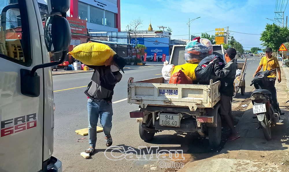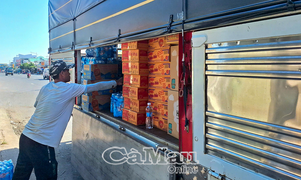 Từng chuyến xe chở hàng hoá nối nhau đổ về. Ai cũng tất bật, vội vàng, nhưng không ai mệt mỏi. Những bàn tay thoăn thoắt bốc xếp từng lốc nước, bao gạo, thùng mì, những túi quần áo..., tất cả gói ghém ân tình của người Cà Mau dành cho đồng bào miền Trung đang gặp hoạn nạn.