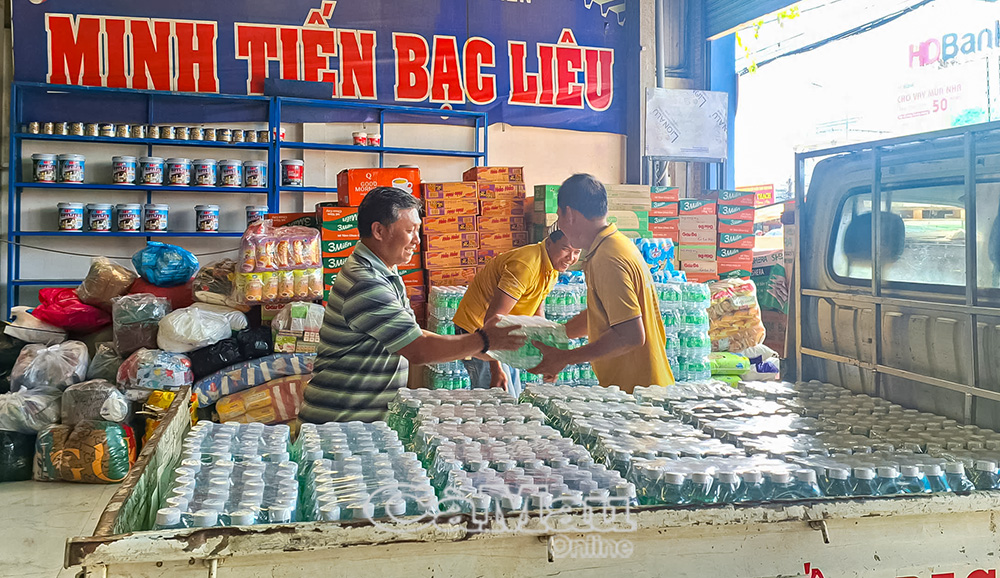 Những ngày qua, Công ty TNHH MTV Minh Tiến Hoà Bình (ấp Thị trấn B) dường như gác lại việc kinh doanh, tận dụng không gian để tập kết hàng hoá cứu trợ, với mục tiêu chung: kịp hoàn thành chuyến xe nghĩa tình để đến với đồng bào miền Trung sớm nhất.