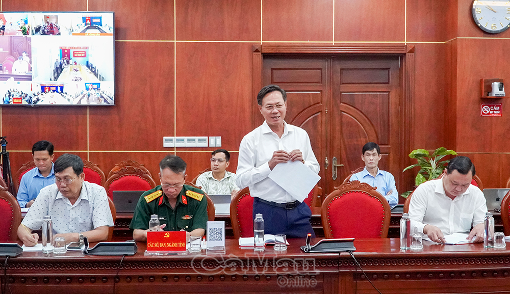 Chủ trì hội nghị có các đồng chí: Huỳnh Quốc Việt, Phó Bí thư Thường trực Tỉnh uỷ; Lữ Quang Ngời, Phó Bí thư Tỉnh uỷ, Chủ tịch UBND tỉnh; Lâm Văn Bi, Uỷ viên Ban Thường vụ Tỉnh uỷ, Phó Chủ tịch Thường trực UBND tỉnh.