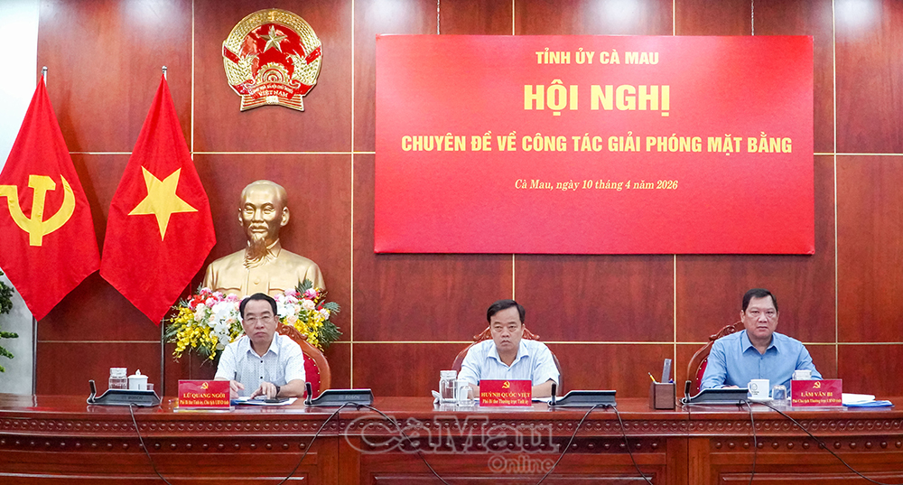 Báo Cà Mau Sáng 10/4, Tỉnh uỷ Cà Mau tổ chức hội nghị trực tiếp kết hợp trực tuyến chuyên đề về công tác bồi thường, giải phóng mặt bằng (GPMB) trên địa bàn tỉnh. Hội nghị xác định đây là "điểm nghẽn" cần tập trung tháo gỡ để tạo động lực phát triển kinh tế - xã hội.