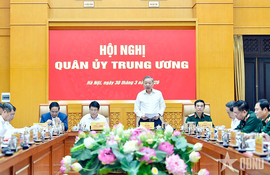 Tổng Bí thư Tô Lâm phát biểu tại Hội nghị Quân uỷ Trung ương sáng 30/3/2026 - Ảnh: Báo Quân đội nhân dân
