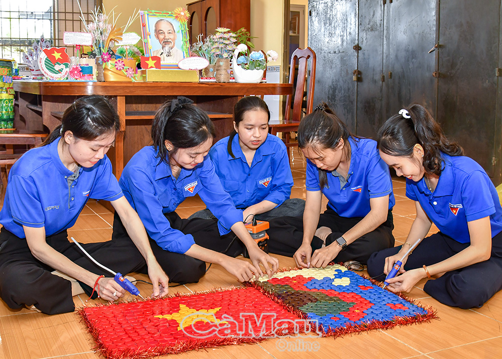 Từ những chiếc vỏ chai, vỏ lon bỏ đi, các đoàn viên, thanh niên tỉ mỉ tạo nên những vật trang trí xinh xắn.