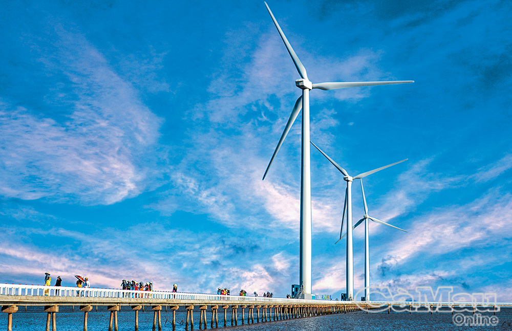 Khu Du lịch Ðiện gió Bạc Liêu, một trong những sản phẩm đặc trưng của Cà Mau được phát huy từ thế mạnh năng lượng sạch.