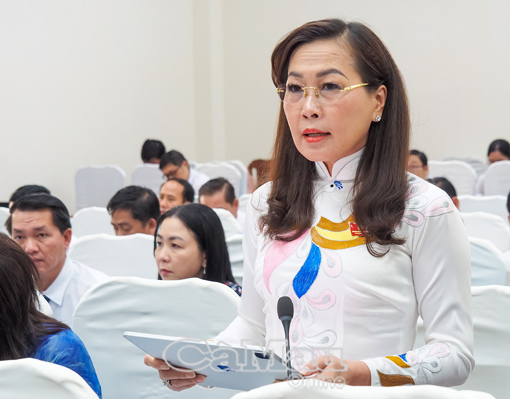Đại biểu Hồ Lệ Quyên, Phó Giám đốc Viễn thông Cà Mau đề xuất các giải pháp nhằm nâng cao hiệu quả thực hiện mục tiêu chuyển đổi số, cải thiện chỉ số DTI, hướng tới xây dựng chính quyền số, xã hội số và kinh tế số bền vững.