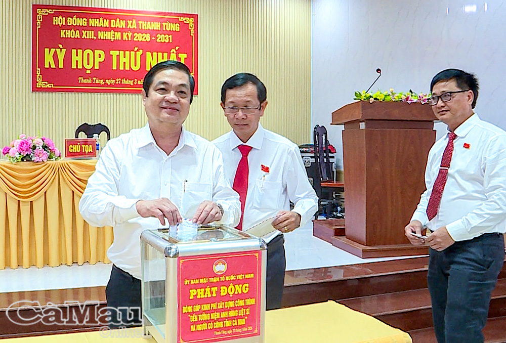 Báo Cà Mau Sáng 27/3, HĐND xã Thanh Tùng khoá XIII, nhiệm kỳ 2026-2031 tiến hành kỳ họp thứ nhất, nhằm kiện toàn tổ chức bộ máy và quyết định các nội dung quan trọng theo thẩm quyền. Lãnh đạo tỉnh dự có đồng chí Huỳnh Chí Nguyện, Phó Chủ tịch UBND tỉnh Cà Mau.