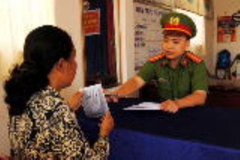 | Thiếu uý Huỳnh Phương Tùng, Cảnh sát khu vực Ấp 4, xã Tắc Vân tiếp xúc với người dân niềm nở, ân cần. |