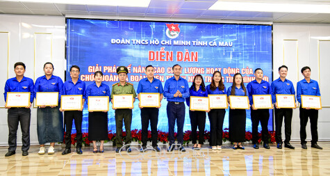 Lãnh đạo Tỉnh đoàn Cà Mau khen thưởng các đơn vị đạt danh hiệu Đơn vị xuất sắc năm 2025.