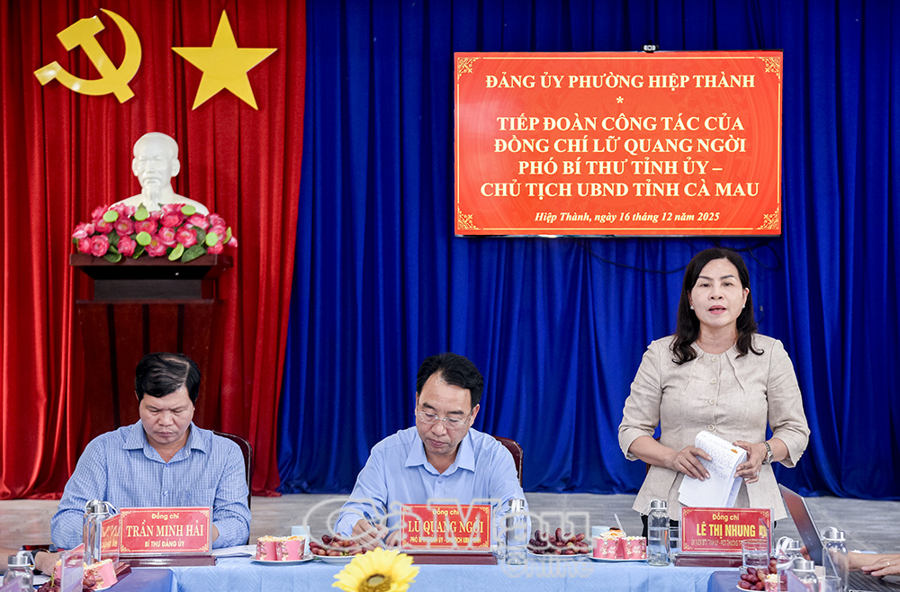 Báo Cà Mau Chiều 16/12, Đoàn công tác do đồng chí Lữ Quang Ngời, Phó Bí thư Tỉnh uỷ, Chủ tịch UBND tỉnh, làm trưởng đoàn, có buổi làm việc với Đảng uỷ phường Hiệp Thành.