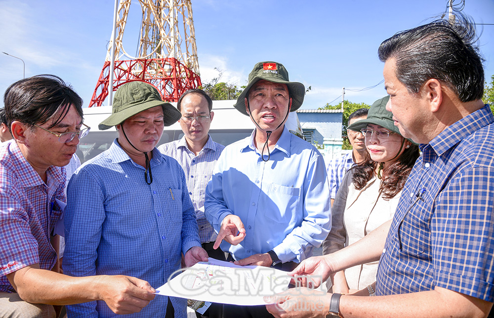 Chủ tịch UBND tỉnh Lữ Quang Ngời khảo sát điểm triển khai Dự án Khu đô thị lấn biển 500 ha tại khóm Nhà Mát.