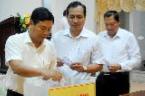 | Chủ tịch UBND tỉnh Cà Mau Nguyễn Tiến Hải (bìa trái) cùng các Phó chủ tịch và toàn thể toàn thể cán bộ, công chức, viên chức, người lao động của Văn phòng UBND tỉnh gây quỹ hỗ trợ đồng bào các tỉnh phía Bắc khắc phục thiệt thiệt hại do bão lũ gây ra. |