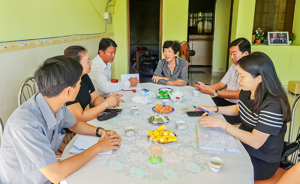 Đoàn cán bộ Viện Khoa học Công nghệ và Môi trường và Liên minh HTX tỉnh Cà Mau làm việc với HTX Cây ăn trái sạch Khánh Hưng.