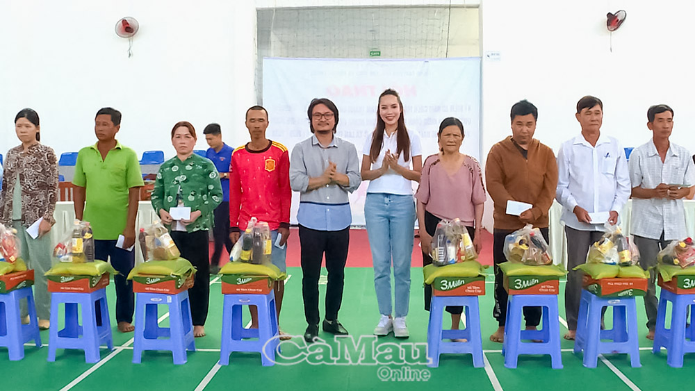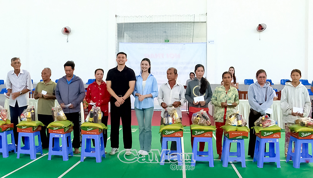 Á vương 2 Mr World Vietnam 2024 Đinh Ta Bi và Á hậu Nguyễn Thị Cẩm Ly (Hoa hậu Quốc gia Việt Nam 2024) giao lưu, trao quà cho bà con xã Long Điền.