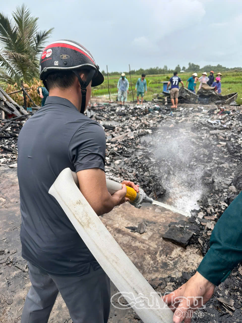 Vụ cháy thiêu rụi hoàn toàn căn nhà ông Lê Văn Mến. Ước thiệt hại khoảng 80 triệu đồng.