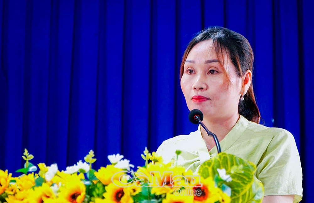 Đồng chí Trang Hồng Thẩm, Phó Chủ tịch Uỷ ban MTTQ Việt Nam phường, Chủ tịch Hội LHPN phường Hoà Thành, báo cáo kết quả vận động hơn 22 triệu đồng ủng hộ đồng bào bị thiên tai, lũ lụt và Nhân dân Cuba.