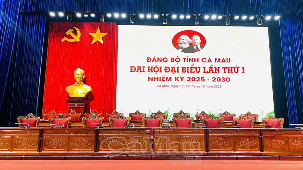 Báo Cà Mau Theo kế hoạch, Đại hội đại biểu Đảng bộ tỉnh Cà Mau lần thứ I, nhiệm kỳ 2025-2030 (Đại hội) sẽ diễn ra trong hai ngày 16 và 17/10 tại Trung tâm Hội nghị tỉnh (đường Lê Duẩn, phường An Xuyên). Đến thời điểm này, công tác chuẩn bị cơ sở vật chất và trang trí khánh tiết đã cơ bản hoàn tất, sẵn sàng cho sự kiện chính trị trọng đại của tỉnh.