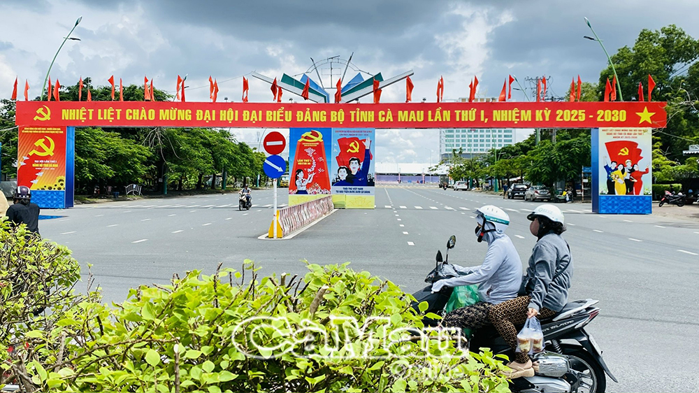 Những ngày này, khu vực Trung tâm Hội nghị tỉnh Cà Mau rực rỡ sắc cờ, sắc hoa, tràn ngập không khí phấn khởi chào mừng Đại hội. Hệ thống pa-nô, băng rôn, khẩu hiệu tuyên truyền được thiết kế công phu, kết hợp hài hòa cùng các dãy cờ hồng kỳ, cây cảnh tạo nên trục dẫn ấn tượng từ cổng chào đến khu vực hội trường chính. Toàn bộ cảnh quan được trang trí trang trọng, chỉn chu, vừa uy nghiêm, vừa gần gũi, thể hiện tinh thần đoàn kết, quyết tâm và kỳ vọng của toàn Đảng, toàn dân trước thềm Đại hội.