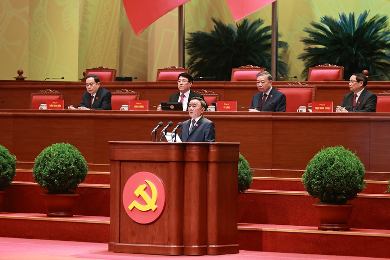 Đồng chí Trần Cẩm Tú, Uỷ viên Bộ Chính trị, Thường trực Ban Bí thư tuyên bố lý do, khai mạc phiên họp trù bị Đại hội XIV của Đảng. Ảnh: VGP/Nhật Bắc (baochinhphu.vn)