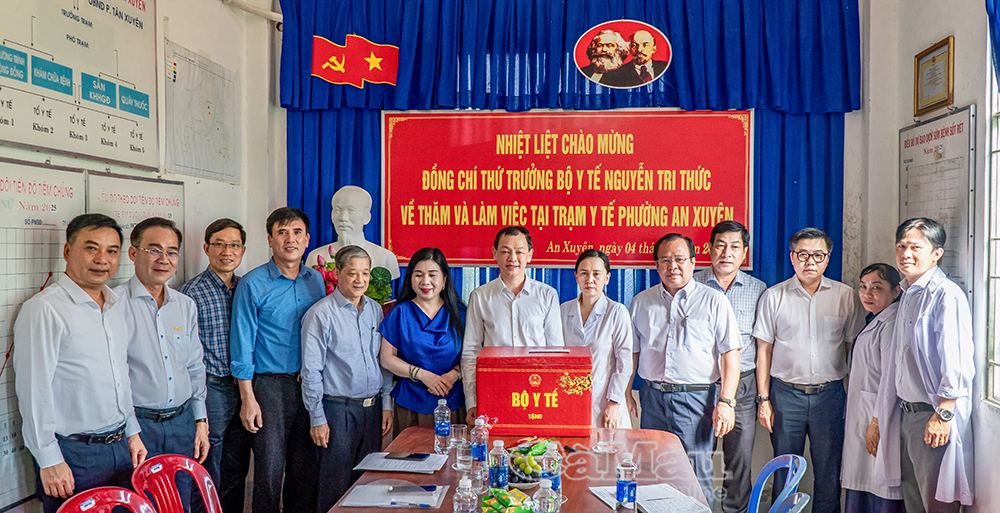 Thứ trưởng Bộ Y tế Nguyễn Tri Thức trao tặng một số thiết bị y tế tổng trị giá 1,2 tỷ đồng cho 3 trạm y tế: phường An Xuyên, xã Vĩnh Mỹ, xã Châu Thới.