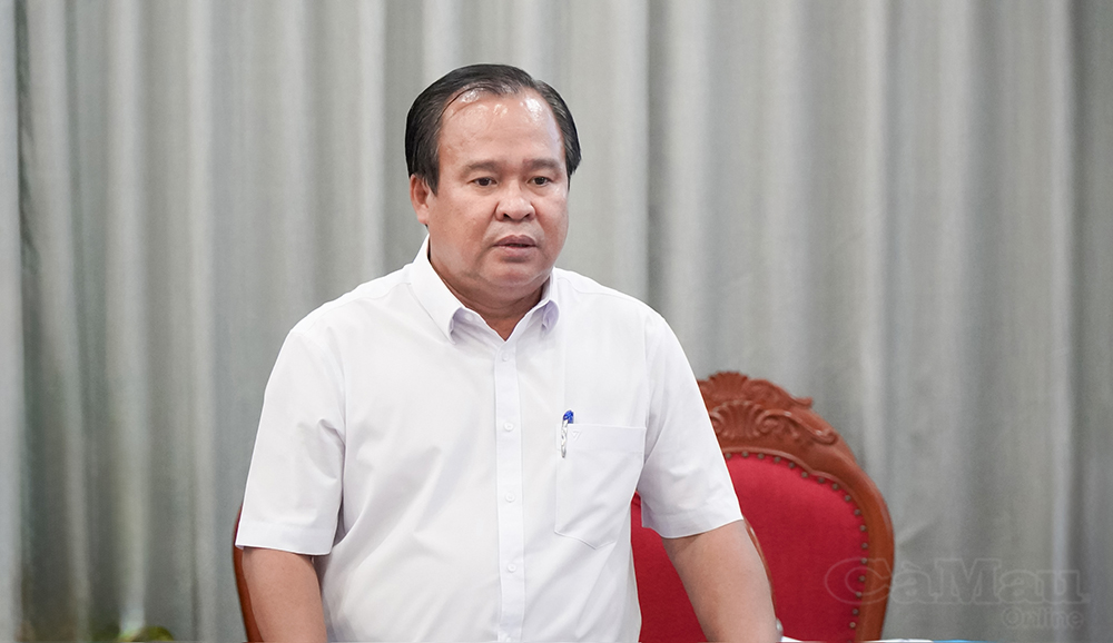 Thứ trưởng Bộ Y tế Nguyễn Tri Thức phát biểu chỉ đạo tại buổi làm việc với ngành Y tế tỉnh Cà Mau.