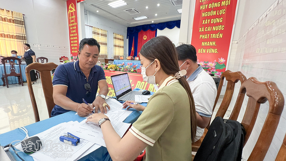 Công tác hoàn trả tiền BHYT tại xã Cái Nước được tổ chức khoa học, nhanh gọn, tạo thuận lợi cho người dân. Ảnh Trúc Linh.