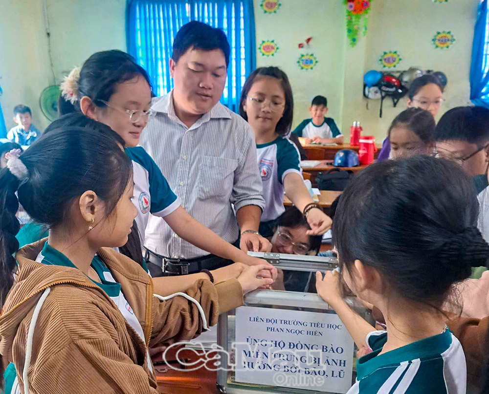 Tại Trường Tiểu học Phan Ngọc Hiển, phường An Xuyên, chỉ trong một buổi sáng, học sinh của 16 lớp đã đóng góp hơn 5 triệu đồng.