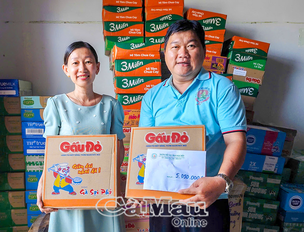 Trường Tiểu học Phan Ngọc Hiển đã đem số tiền và mì các học sinh quyên góp đến Nhà Thiếu nhi tỉnh Cà Mau để gửi ra miền Trung.