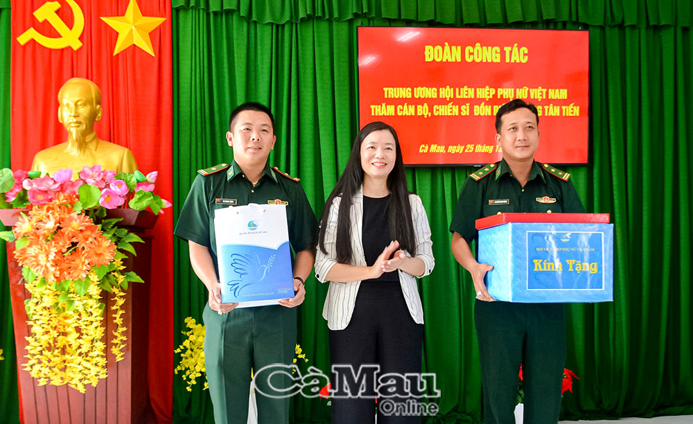 Nhân dịp này, Trung ương Hội LHPN Việt Nam tặng 3 phần quà nhằm động viên cán bộ, chiến sĩ Đồn Biên phòng Tân Tiến; cán bộ, người lao động Hội LHPN tỉnh Cà Mau và Hội LHPN xã Tân Tiến.